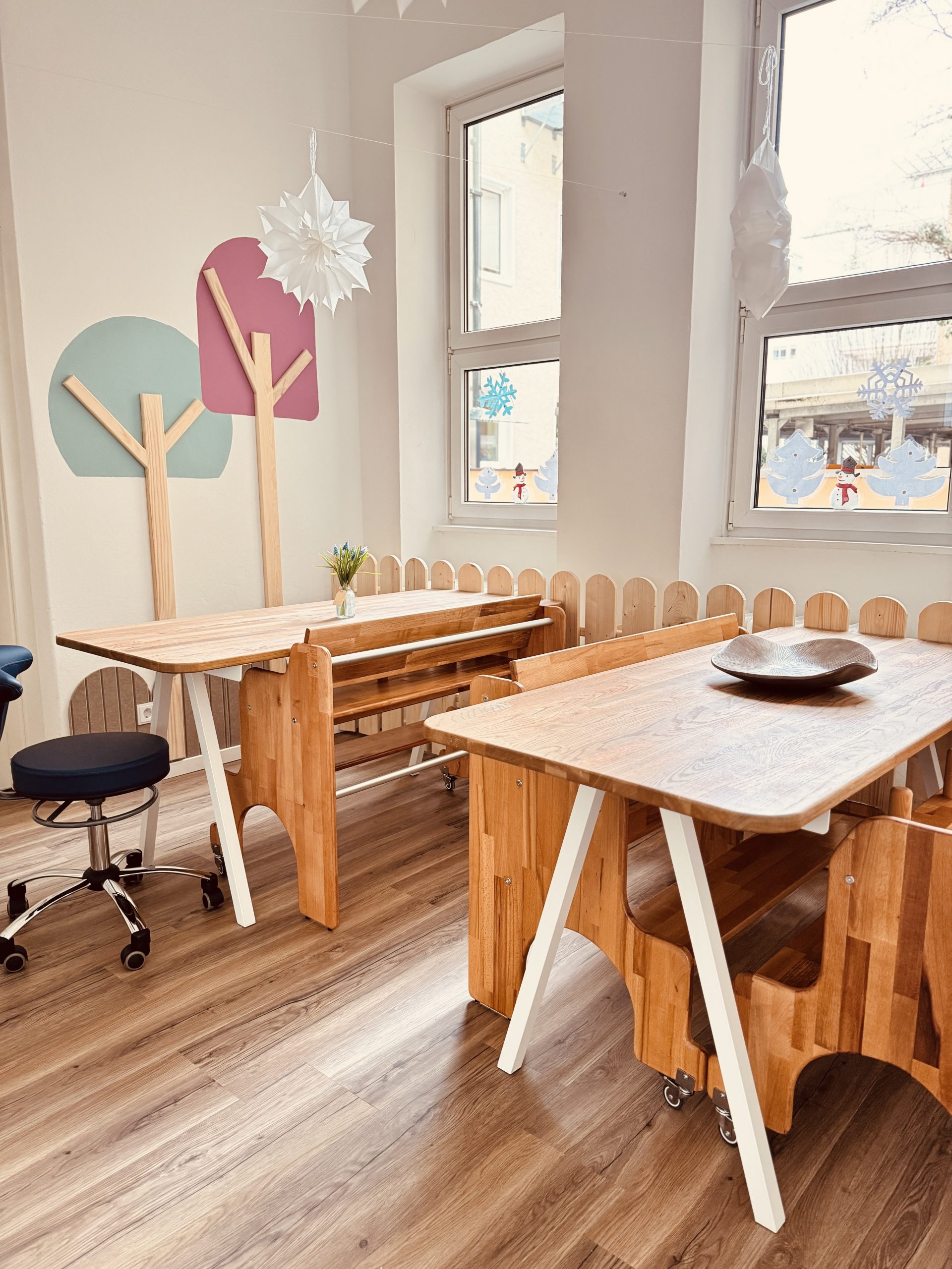 Mit großer Freude führe ich mit den Kindern Angebote im Bereich der musikalischen Früherziehung durch. Diese verbinde ich oft mit den täglichen Ritualen, wie zum Beispiel im Morgenkreis oder bei den Übergängen im Tagesgeschehen.
